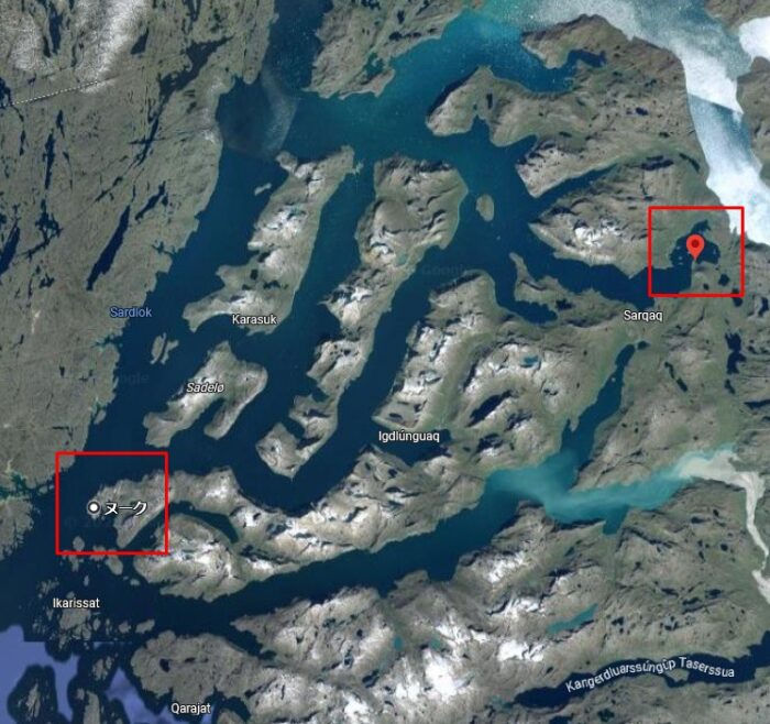 最大都市のヌークですら、最も近い町のカピシリット(Kapisillit 人口50人程)まで直線距離で約75km。しかもGoogle Mapの画像の通り、車で行くことは不可能です。