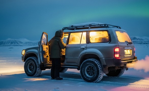 グリーンランドでは、自動車は移動できる暖房、待避所として重宝されています。